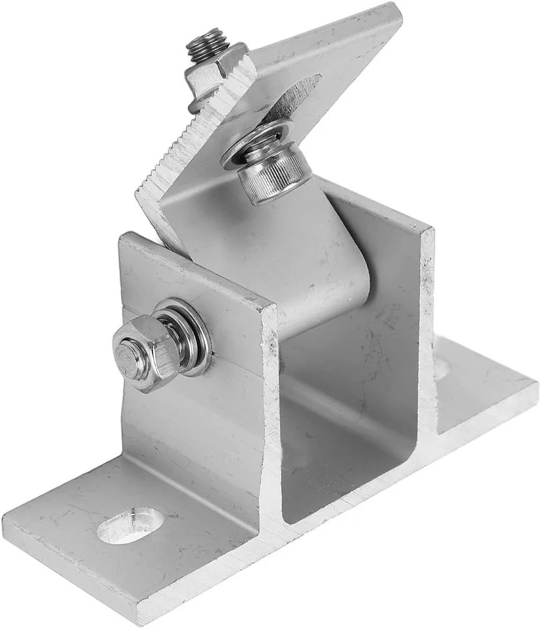 Soporte tipo L ajustable, diseñado para la instalación segura de paneles solares en distintas superficies. Permite ajustes para facilitar la alineación y fijación del panel, asegurando estabilidad y una correcta orientación.