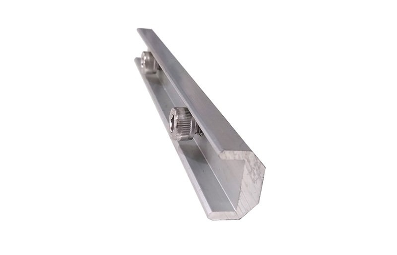 Unión de riel diseñada para conectar y extender rieles de aluminio en estructuras de montaje de paneles solares. Permite una alineación firme y segura, asegurando continuidad y estabilidad en la estructura.